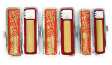 通常750円の赤色の高級モミ皮ケースにも無料で色変更が可能ですので、女性の方向けにお気軽に変更ができます。